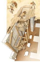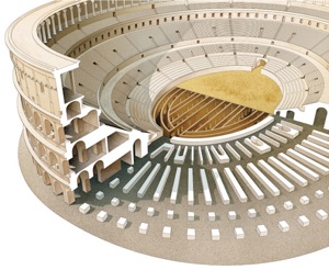 he top of the building, in the Coliseum the items propped out from the basement underneath the arena, called the Hypogeum. The illustrations are coming from