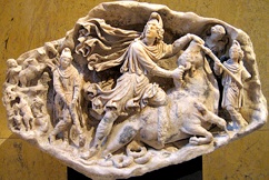lapis niger, the black stone under which was buried Ostilio Tullus. It was said that the head of this king gave its name to the second hill of Rome: caput Tullus -> Capitol. But during the rites of the archaic funerals, there would be a combat. Similar to the bull-fighting in Spain today. the underlaying idea is that if you can kill the bull, the power of the bull is going over in you. In the combat during the funeral rites, the power is going over to the man who get buried in his journey to the other world. In the Mythras