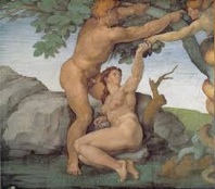 And this is probably also one of the big revolutions that Michelangelo did during the creation in the Sistine Chapel: The downfall of Adam and Eve. As we can see clearly, Adam takes the apple by himself ! Not she is guilty, but both are guilty.